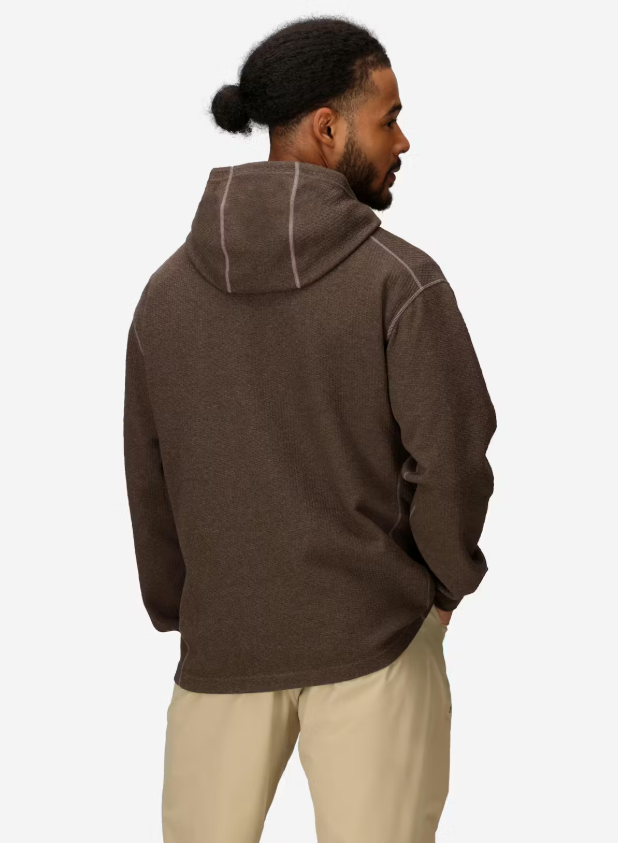 Удобен и функционален мъжки суитшърт със структуриран плат, съчетаващ мека вътрешна повърхност с текстурирана външна страна и практични детайли, подходящ за ежедневие, къмпинг или активни преходи.