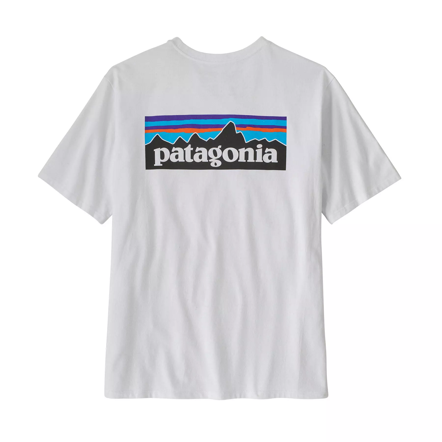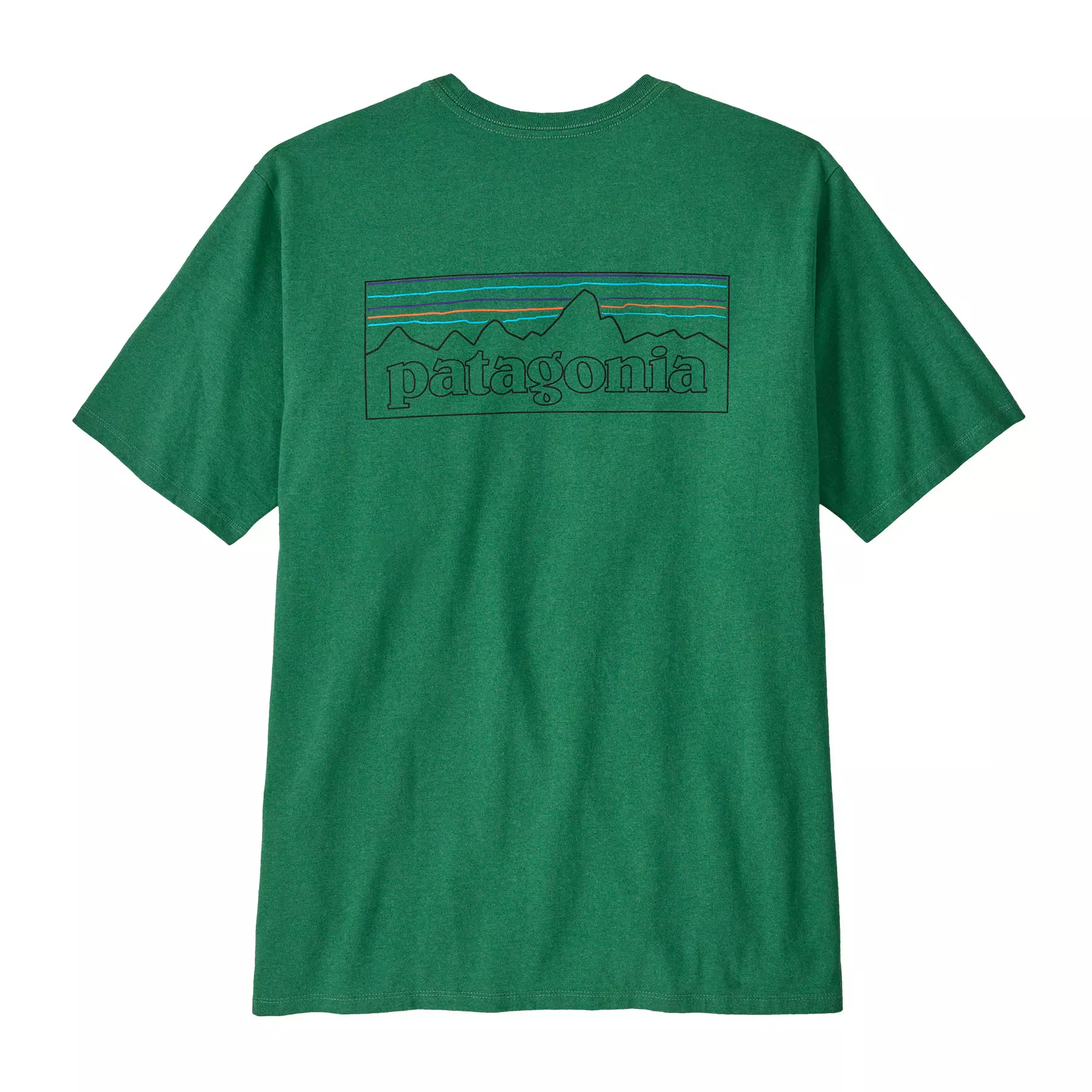 Класическа графика върху тениската с най-нисък въглероден отпечатък на Patagonia, която е направена от рециклирани тъкани. Чрез използването на остатъци от тъкани и рециклирани бутилки, тази тениска, изработена от 100% рециклирана тъкан, намалява зависимостта ни от чисти материали.
